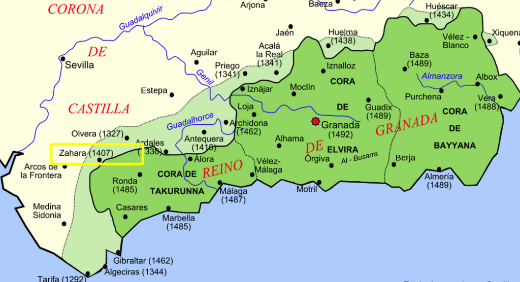 Esta importante fortaleza, estaba situada sobre un escarpado cerro entre Ronda y Medina Sidonia, y la dominaba un castillo encaramado en un peñasco tan alto, que se decía descollaba entre las nubes, y que las aves no alcanzaban a remontar hasta allí el vuelo. Las calles y muchas de las casas, no eran mas que excavaciones labradas en la peña viva.